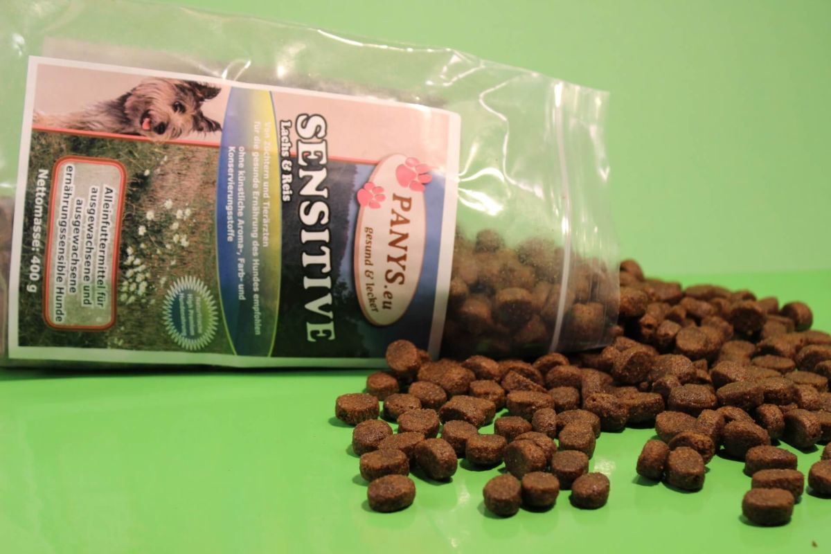 PANYS Adult Sensitive Lachs & Reis ist eine Alleinnahrung für weniger aktive, empfindliche Hunde aller Rassen oder auch für Hunde mit Nahrungsunverträglichkeiten.