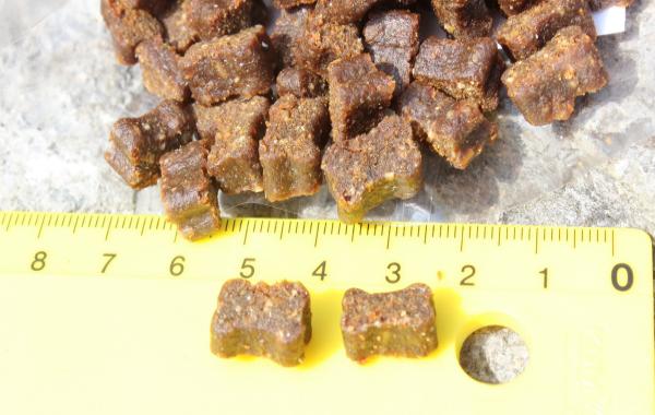| Unsere Fütterungsempfehlung ist für den normal aktiven Hund und beruht auf unserer jahrelangen Erfahrung. Die empfohlene Menge hängt von der Aktivität ab. Je mehr Sie mit dem Hund arbeiten, Sport oder Spiele machen bzw. versuchen Ihren Hund zu erziehen, desto mehr können Sie geben (nach Möglichkeit aber nicht über die Empfehlung hinaus). Füttern Sie die angegebene Ration bitte nicht als Mahlzeiten, sondern nur einzeln und als Belohnung für gute Leistungen |